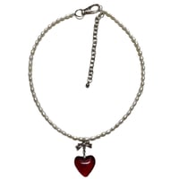 A necklace to pair perfectly with the Dainty Earrings! Made with lots of freshwater pearls and a bow pendant with a mini stinky heart hanging from it! About 14 inches in length with a 3 inch extension chain!