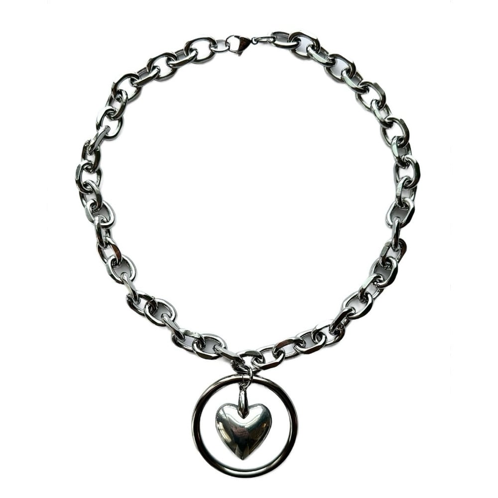 A simple yet impactful design for my daring baddies! Made with a chunky stainless steel chain and a mini Stinky heart inside a metal hoop! The heart is rainbow on one side and silver on the other so it can be worn either way! A fun double sided design that’s about 16 inches in length! <3