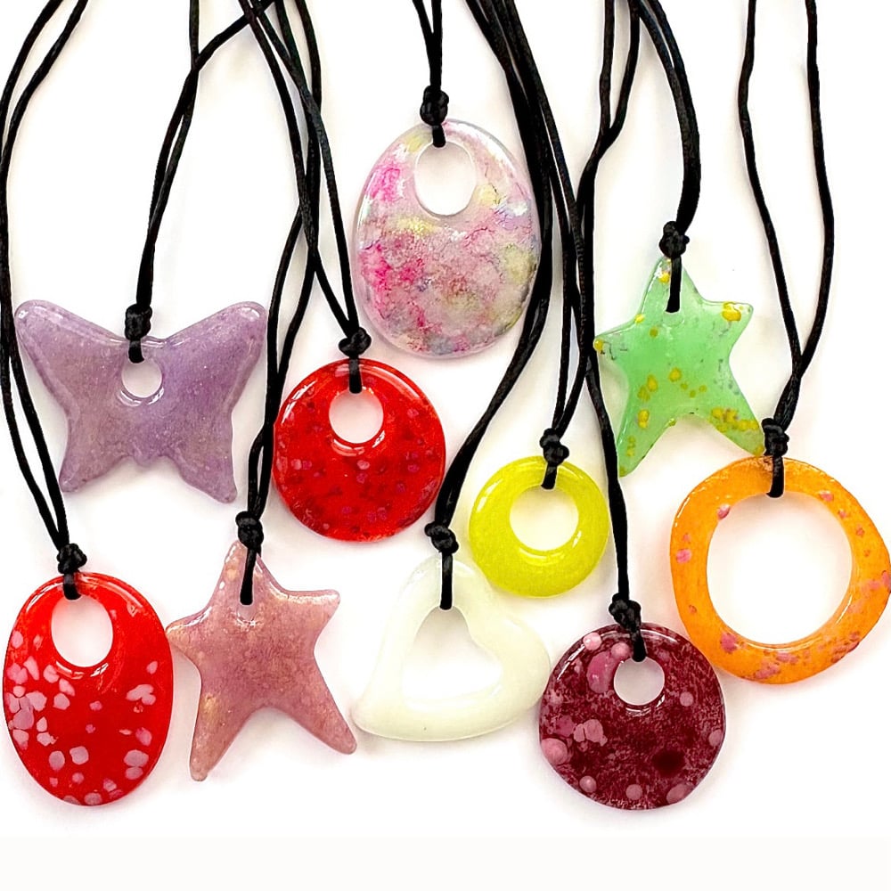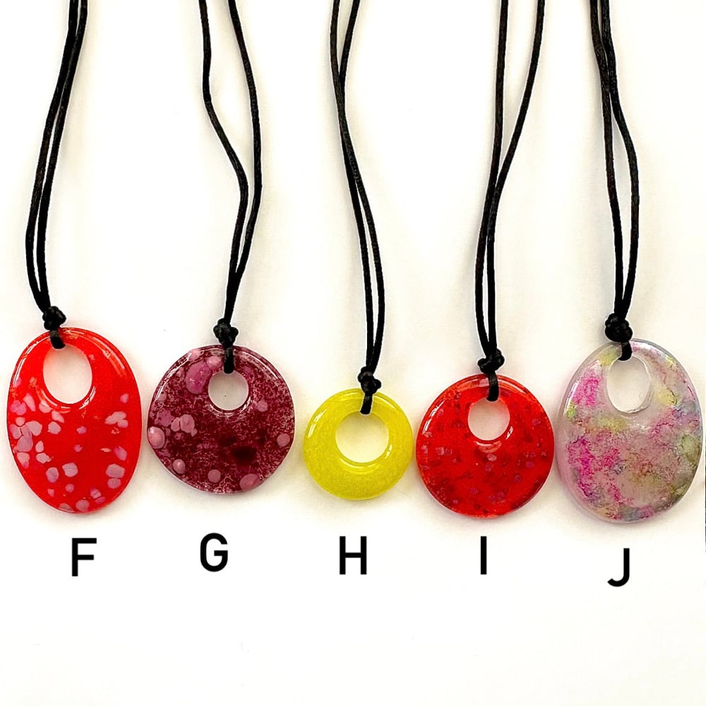 One-of-one Spring glass pendant necklaces made in collaboration with my lovely glass maker! Each pendant is one of a kind and you won’t find one anywhere else! So special and lovely. Each on a black satin cord that is around 16 inches long <3