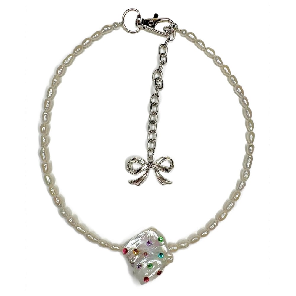 The perfect gift for a baddie with infinite whimsy! Made with freshwater pearls and a hand stoned Baroque freshwater pearl centerpiece! About 14 inches in length with a 3 inch extension chain! <3